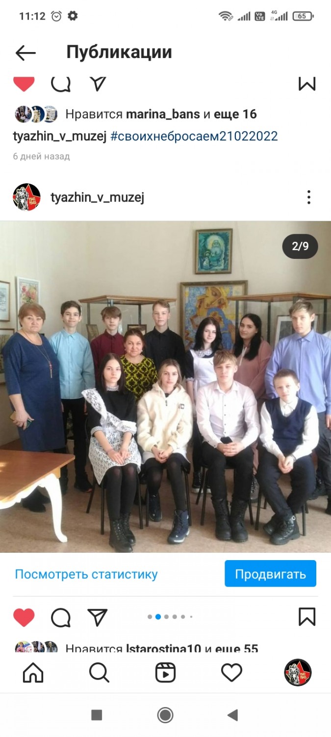 В этот день в музее состоялось открытие выставки картин Натальи Емельяновой под названием "Мой выбор - творить". На открытии выставки присутствовали учащиеся 8 классов "ТСШ №2" и их классные руководители. Участникам мероприятия посчастливилось пообщаться с автором работ и задать интересующие вопросы. А также сотрудники музея провели для ребят и взрослых викторину, посвященную Дню Защитника Отечества. Победителями викторины стали Слободчикова Валентина Александровна и Шевцов Никита, им были вручены достойные призы. Для всех гостей была проведена обзорная экскурсия по музею.