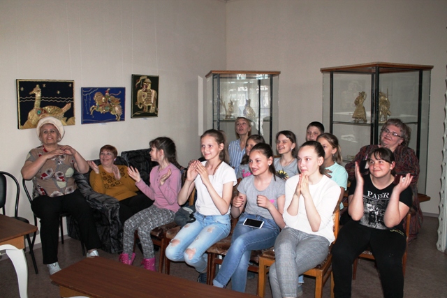 Макарова Татьяна Викторовна рассказала об истории празднования Международного дня музеев и о традиции акции «Ночь музеев». Меновщикова Антонина Анатольевна сыграла роль Петрушки, провела с земляками игру «Живой театр» и музыкальную игру «Сердце красавицы».