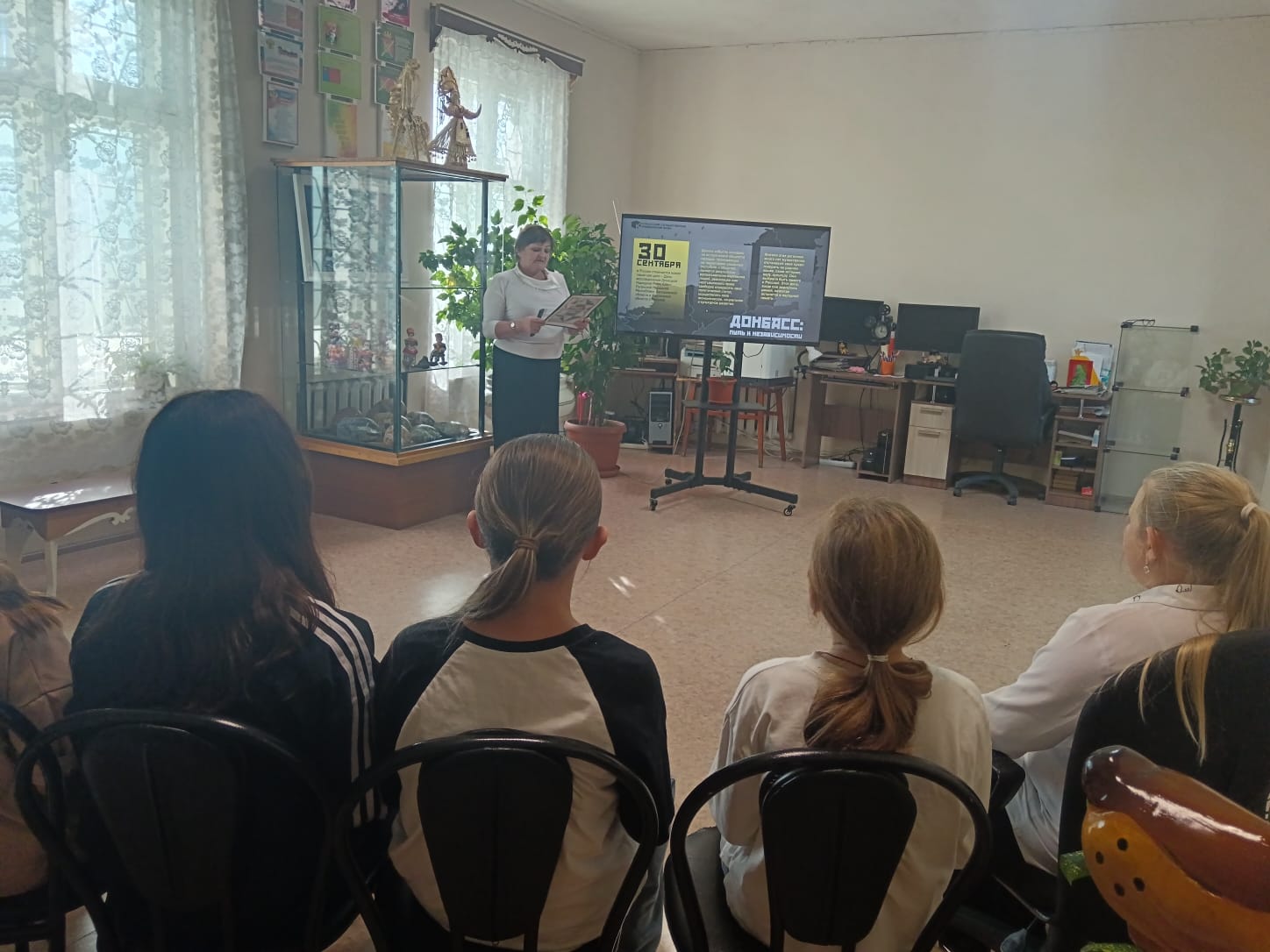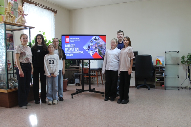 Тридцатого сентября в день новой памятной даты, отмечаемой в России, для участников творческого объединения «Город детства» Центра дополнительного образования проведен Всекузбасский Час истории "Будущее вместе с Россией". Участники мероприятия ознакомились с историей восстановления исторической справедливости для народов, проживающих на территориях Донецкой Народной Республики, Луганской Народной Республики, Запорожской области и Херсонской области. Ребята открыли новую страницу в их истории - воссоединение с Россией. Час истории расширил знания школьников, укрепил чувство гордости за свою Родину, свой народ, свою землю и историю. И нам сегодня стоит помнить о прошлом, знать настоящее, чтобы построить светлое будущее.