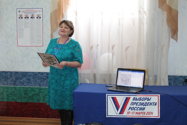 Председатель избирательной комиссии Жогина Галина Алексеевна рассказала ребятам о значении выборов для общества, о ходе подготовки и оформлении участка к важному политическому событию.