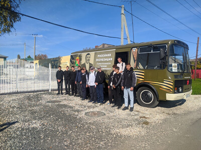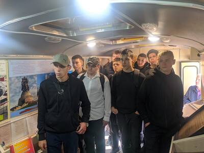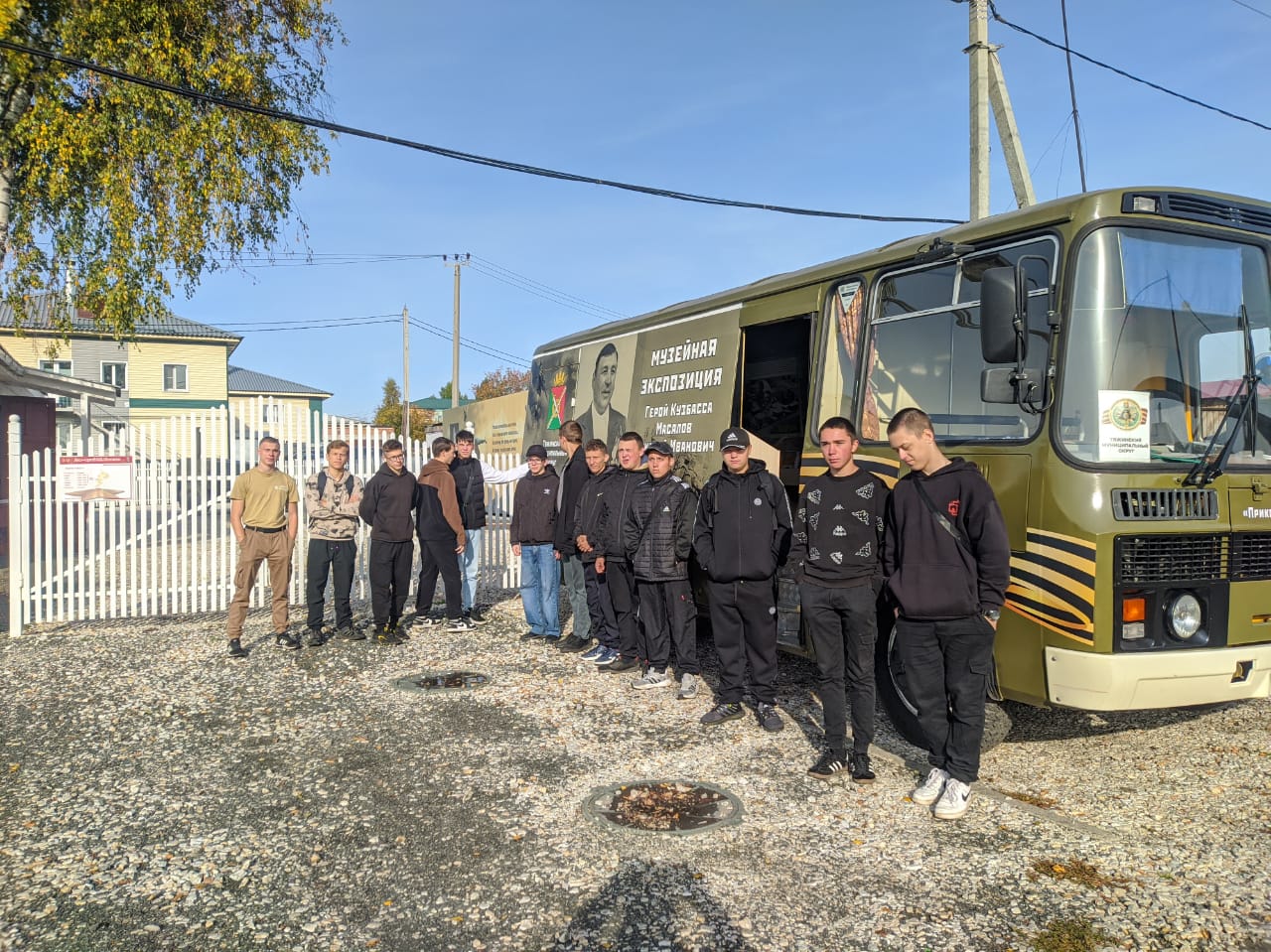 Восемнадцатого и девятнадцатого сентября маршрут посетили студенты Тяжинского агропромышленного техникума. Ребята прошли по достопримечательным местам, связанных с именем нашего героического земляка. В передвижной экспозиции на колесах «Прикосновение к Подвигу» познакомились с письмами, открытками и телеграммами, которые приходили в дом Масаловых. Посмотрели фильм, в котором Николай Иванович рассказывает о своей жизни. Ребята с большим интересом слушали экскурсовода и задавали вопросы.