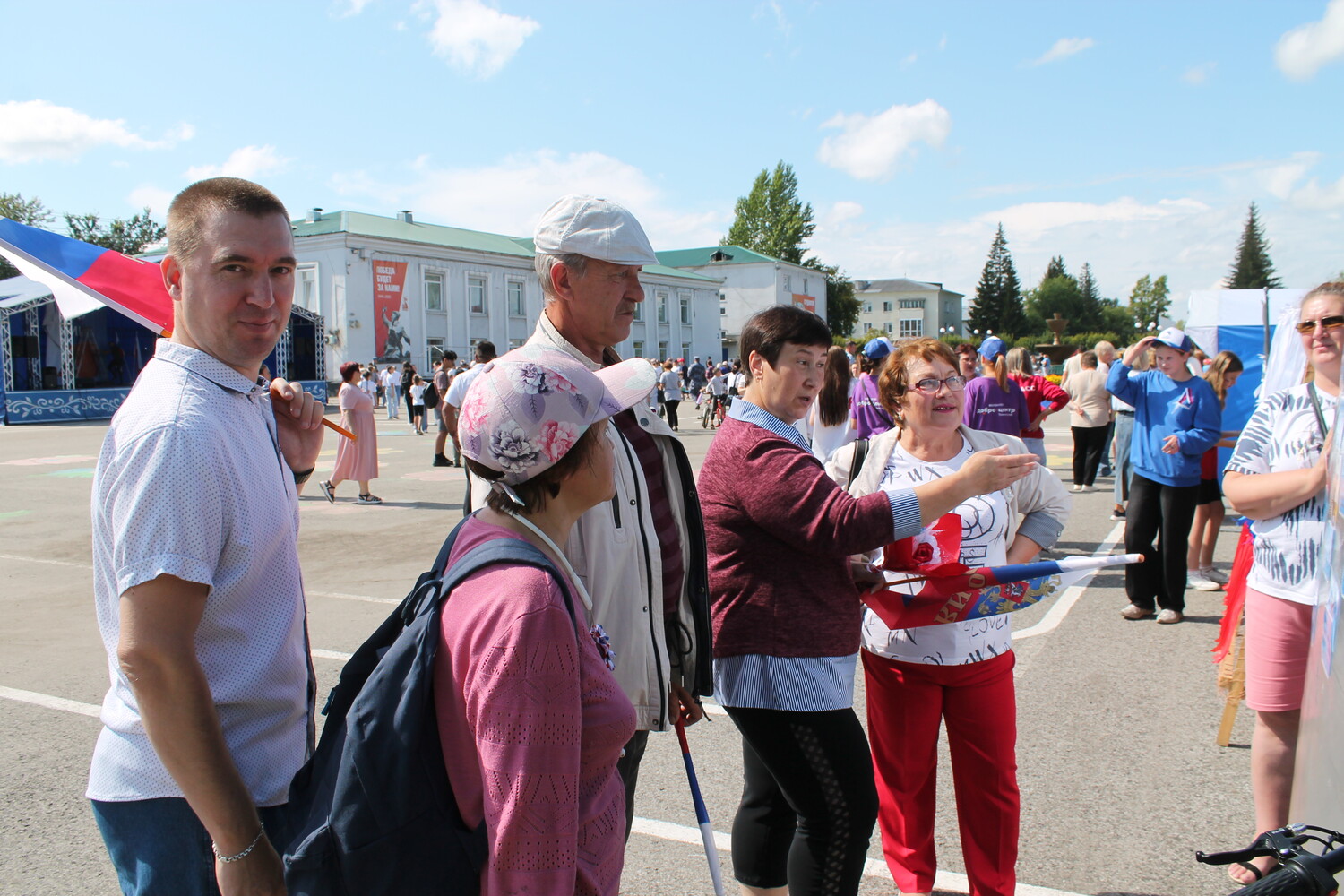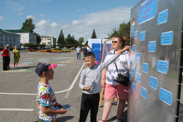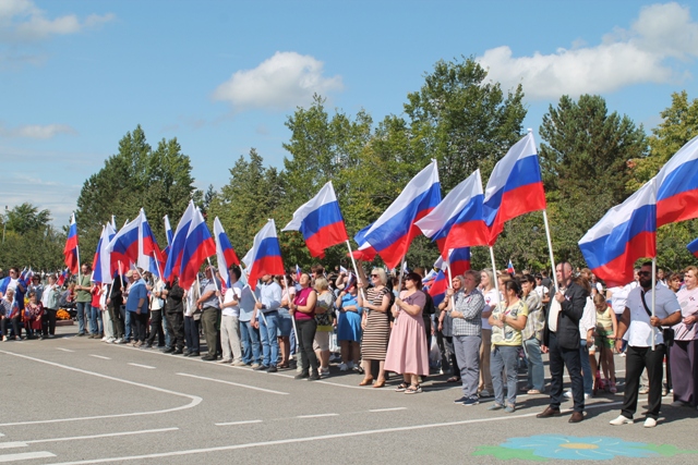Сегодня в поселке Тяжинский на площади Ленина многолюдно. Жители и гости собрались на праздник, посвященный Дню Государственного флага Российской Федерации.
