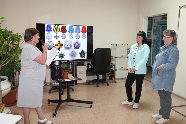 В историко-краеведческом музее двадцать второго июля для получателей социальных услуг ОДП «Надежда» прошла информационно-развлекательная программа «Награда ищет своего героя». Люди старшего поколения с нескрываемым интересом слушали ведущего и принимали участие в занимательных конкурсах. Особенно яркой получилась фотография на Доску Почета. Для гостей была проведена обзорная экскурсия по музею.
