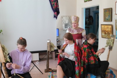 Шестнадцатого марта в историко-краеведческом музее прошел видеоэкскурс "Бабушкина прялка" для обучающихся 6 класса ТСШ№1(классный руководитель Ермакова Н. В. ). Василиса Премудрая, хранительница музейных секретов, рассказала ребятам о забытых знаниях наших предков, продемонстрировала виды прялок, представленные в нашем музее. Ребята познакомились с такими понятиями: донец, лопастка, веретено и многими другими. Девочки попробовали себя в роли пряхи и свили свои первые ниточки из шерсти. В ходе мероприятия был продемонстрирован фильм "Вселенское значение прялки". В фильме были представлены различные виды прялок, и раскрывался тайный смысл символов, которые использовали наши предки. Мероприятие закончилось экскурсией по экспозиции "Путешествие по русской старине", где ребята познакомились с предметами быта 20 века.