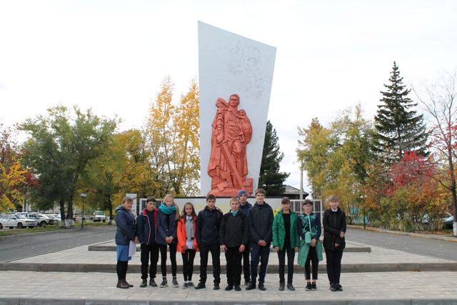 В пгт.Тяжинский 25 сентября 2019 года сотрудниками краеведческого музея, районной библиотеки и парка культуры и отдыха в рамках проекта «Прикоснись к подвигу» для обучающихся 8 классов МБОУ «Тяжинская средняя общеобразовательная школа №3» была проведена квест-игра по экскурсионному маршруту «Памяти Героя Кузбасса Н.И.Масалова».