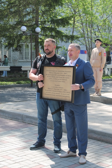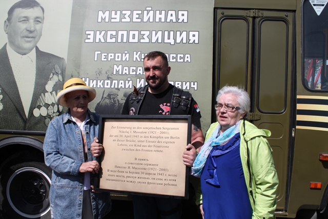 В год 100-летия со Дня рождения Николая Ивановича Масалова, подвиг которого увековечен в монументе «Воин-освободитель» в Трептов-парке, он воплотил в жизнь задуманное. Александр преодолел на мотоцикле больше шести тысяч километров по Германии, Польше, Беларуси и России, чтобы доставить реликвию из города Берлина в поселок Тяжинский.