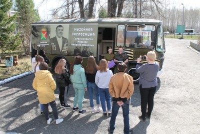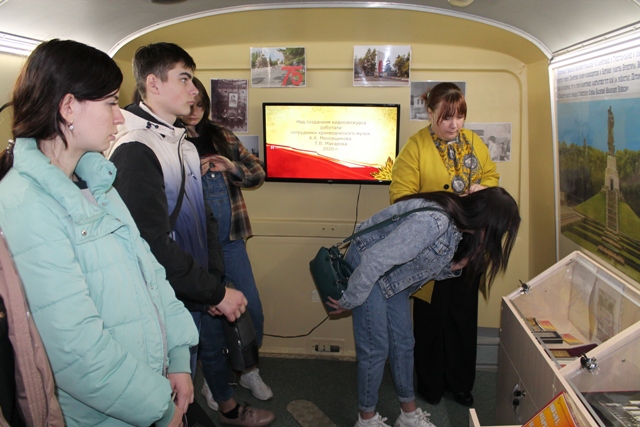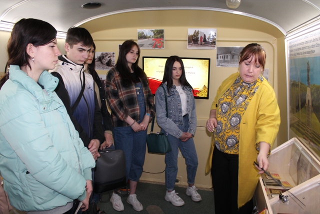 Шестого мая сотрудниками историко-краеведческого музея для студентов первого курса Тяжинского агропромышленного техникума были проведены экскурсии по музейной экспозиции «Прикосновение к Подвигу». Ребята с интересом слушали экскурсоводов, посмотрели исторический видеоэкскурс «В жизни всегда есть место подвигу».