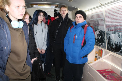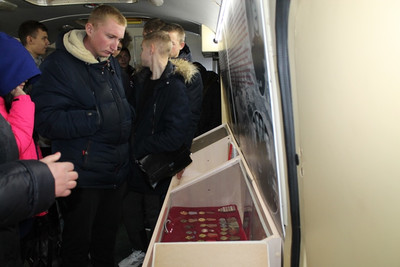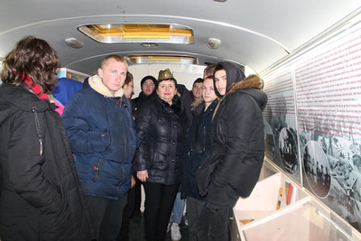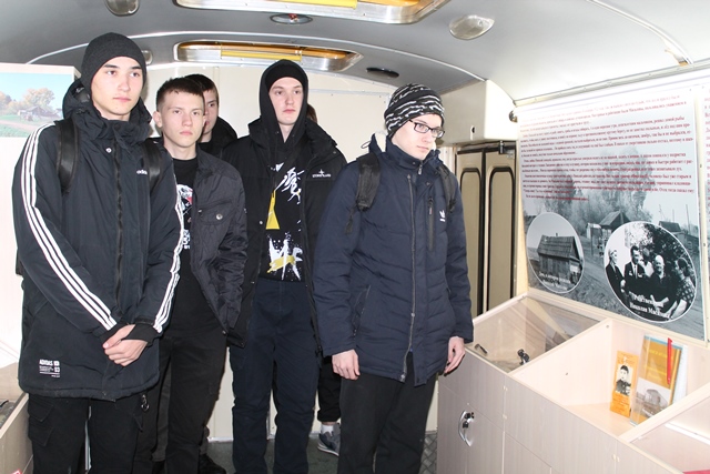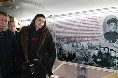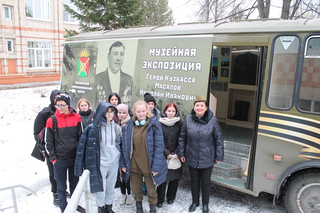 Первого ноября экспозиция на колесах «Прикосновение к Подвигу» радушно распахнула свои двери для студентов-первокурсников Тяжинского агропромышленного техникума. Ребята узнали интересные факты о жизни и подвиге нашего земляка Николая Ивановича Масалова, для них был продемонстрирован фильм «В жизни всегда есть место подвигу», а также они смогли рассмотреть личные вещи, сувениры, документы, письма и награды, принадлежавшие Герою.