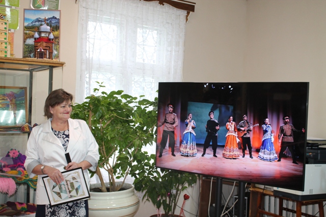 Участники мероприятия познакомились с историей возникновения казачества в Сибири, узнали о том, как в современном мире живут казаки, об их культуре, быте и традициях. Для ребят были продемонстрированы видеозаписи казачьих песен в исполнении народного самодеятельного коллектива, ансамбля казачьей песни «Чаровница» под руководством Сергея Александровича Каплунова и ансамбля народной песни «Любо-Мило» под управлением нашей землячки Екатерины Бринчуговой (Жогиной).
