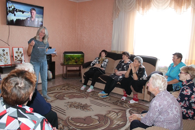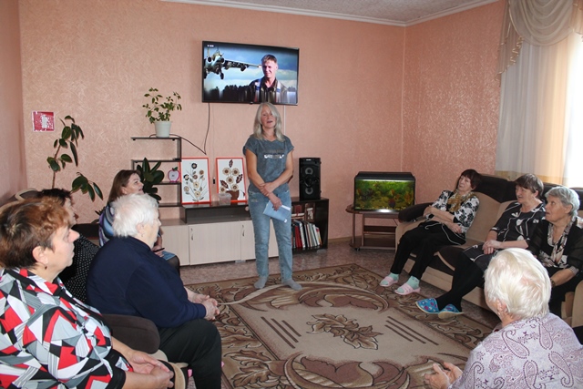 Девятнадцатого октября сотрудники историко-краеведческого музея посетили центр дневного пребывания для пожилых людей. В атмосфере радушия и гостеприимства прошла встреча, на которой шёл разговор о России, о ситуации, которая сейчас происходит в нашей стране. Для отдыхающих был продемонстрирован короткометражный видеофильм «У каждого времени свои герои».