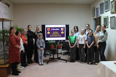 Шестого декабря для учащихся детской художественной школы №13 был проведен урок истории по теме: «Отечество своих героев ценит». Дети узнали об истории возникновения праздника, о героях земли Тяжинской, посмотрели фильм «У каждого времени свои герои». Нам есть, кем гордиться и о ком рассказывать юному поколению.