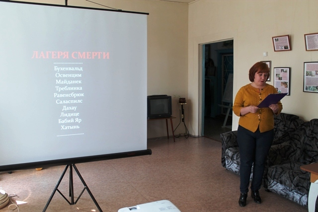 Меновщикова Антонина Анатольевна – методист районного краеведческого музея рассказала ребятам о лагерях смерти и о зверствах фашистов, которые замучили в застенках, расстреляли, задушили в газовых камерах миллионы людей.