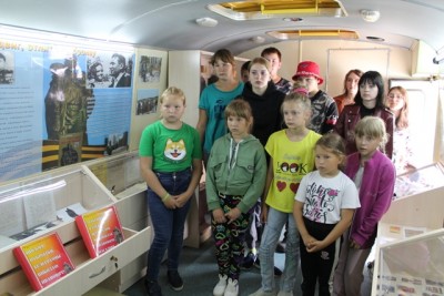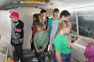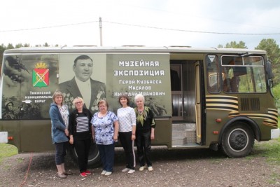 Семнадцатого июня с музейной экспозицией на колесах «Прикосновение к Подвигу» познакомились дети и педагоги МКОУ «Тисульская средняя общеобразовательная школа». Посетители очень внимательно слушали рассказ экскурсовода о жизни и подвиге легендарного земляка Николая Ивановича Масалова – Героя Кузбасса, посмотрели фильм «Человек из легенды». Дети и взрослые задавали экскурсоводу интересующие их вопросы.