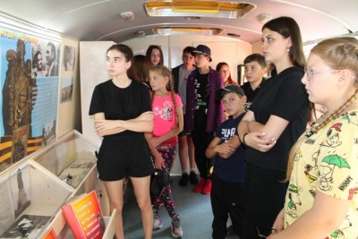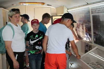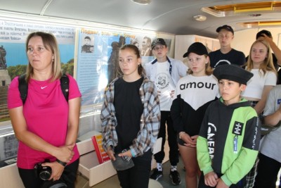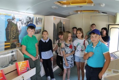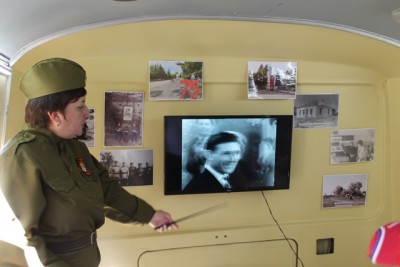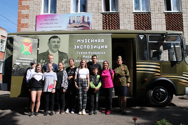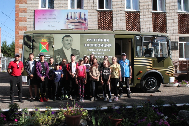 Сотрудник историко-краеведческого музея Макарова Татьяна Викторовна познакомила гостей с музейной экспозицией на колесах «Прикосновение к Подвигу». Знаменательно принимать экскурсантов в Год 100-летия со Дня рождения Николая Ивановича Масалова – Героя Кузбасса.