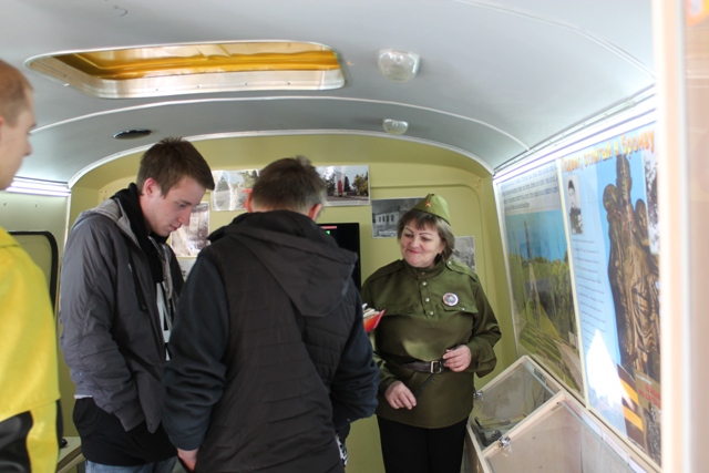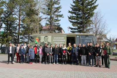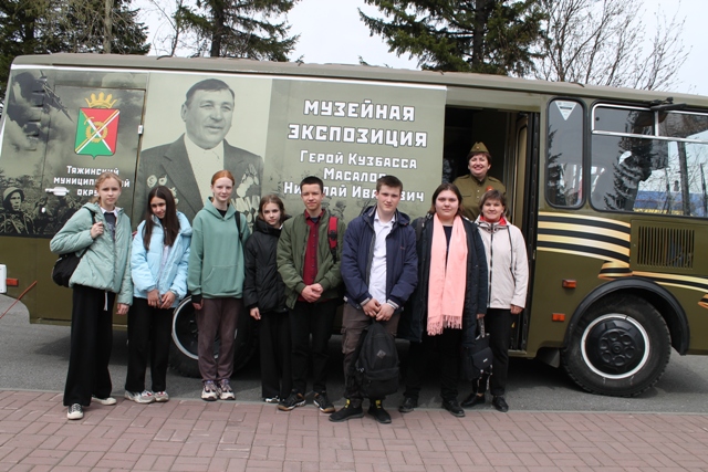 Одиннадцатого мая сотрудниками историко-краеведческого музея была организована работа музейной экспозиции на колесах «Прикосновение к Подвигу». Экспозицию посетили призывники-тяжинцы и обучающиеся 7, 9,11 классов МБОУ «Тяжинская средняя общеобразовательная школа № 1 имени Героя Кузбасса Н.И.Масалова». Отрадно то, что молодежь и школьники проявляют нескрываемый интерес к героическим страницам нашей истории.
