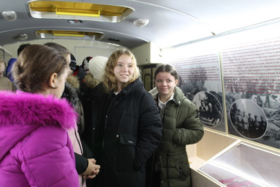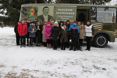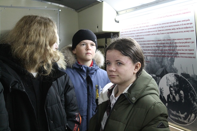 Двадцать третьего ноября в селе Ступишино для обучающихся МБОУ «Ступишинская СОШ имени Героя РФ С.Н.Морозова» сотрудниками историко-краеведческого музея была проведена экскурсия по передвижной экспозиции на колесах «Прикосновение к Подвигу». Ребята с неподдельным интересом слушали рассказ о жизни и подвиге Героя и очень внимательно рассматривали экспозицию. Благодарные посетители написали свой отзыв.