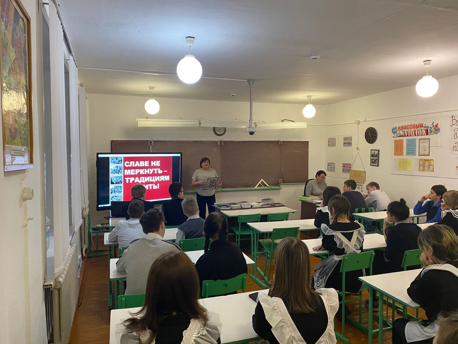 Двадцать четвертого ноября 2025 года для учащихся 8 классов МБОУ «Тяжинская средняя общеобразовательная школа №2» методист историко-краеведческого музея Шустова Татьяна Александровна провела урок мужества по теме: «Славе – не меркнуть! Традициям – жить!».