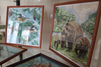 Супруги Луневы: Иван Степанович и Наталья Юрьевна представили изделия из бересты и вязаных героев из полнометражного мультфильма «Смешарики». Маранина Надежда Анатольевна очень любит вязать и заниматься алмазной вышивкой. Выставку украшают её замечательные работы, выполненные в обеих техниках. Реалистичные картины, вышитые Сомовой Валентиной Петровной, завораживают и улучшают настроение.