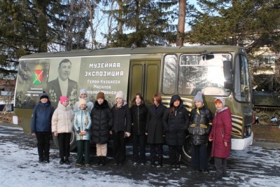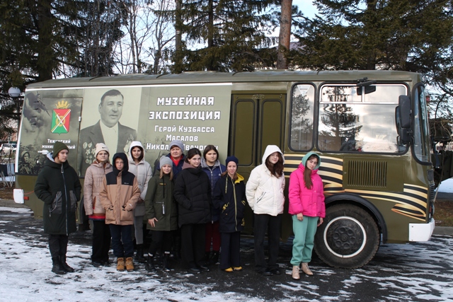 Первого ноября сотрудники историко-краеведческого музея встречали гостей из Кемеровского муниципального округа. Обучающиеся Елыкаевской общеобразовательной средней школы посетили информационную мобильную выставку, ребятам была представлена уникальная возможность увидеть музейную экспозицию на колесах «Прикосновение к Подвигу». Школьники с большим интересом слушали рассказ о жизни и подвиге Масалова Николая Ивановича. Их вниманию были представлены различные экспонаты: личные вещи, награды, фотографии, кадры кинохроники, официальные документы, печатные материалы, переписка Героя. С большим радушием открыла свои двери для гостей библиотека, в музейной комнате ребята поучаствовали в квесте «Подвиг солдата», тем самым закрепили свои знания о человеке-легенде. Эта встреча была неслучайна, потому что Елыкаевская школа носит имя нашего легендарного земляка!